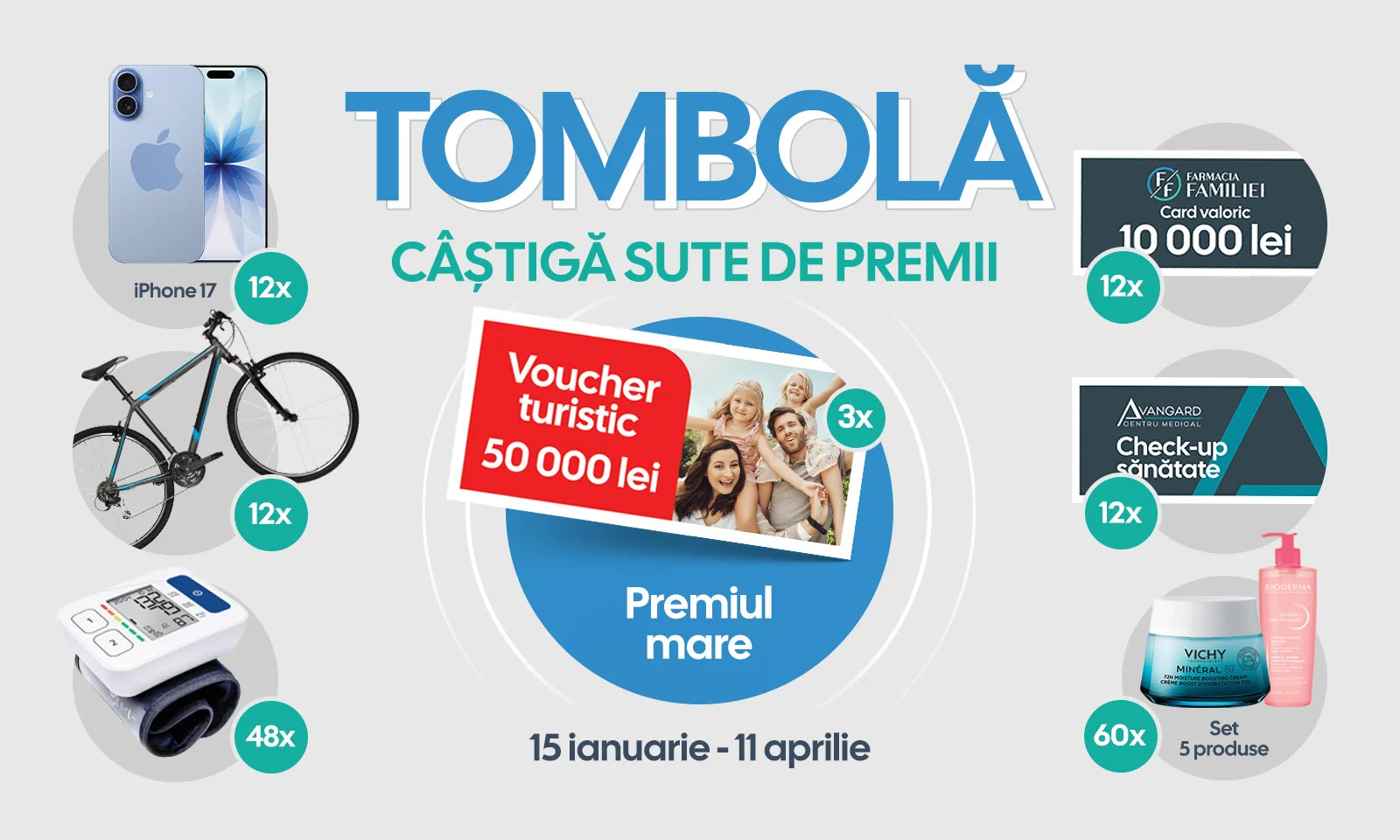 Participă în tombola offline între 15 ianuarie și 11 aprilie și poți câștiga premii valoroase!
