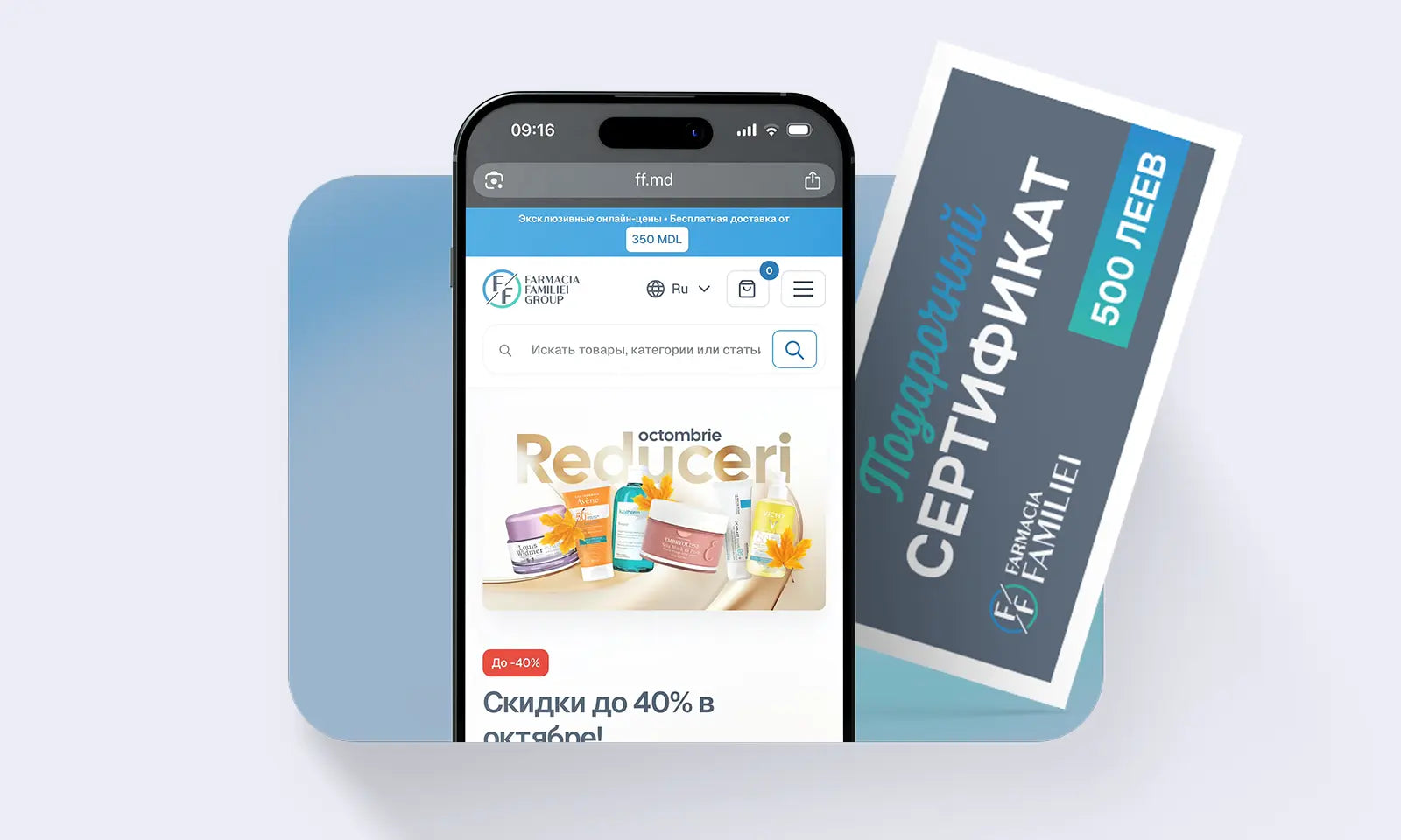 Fă o comandă online și intri automat în tombola zilnică, unde poți câștiga un certificat cadou de 500 lei.